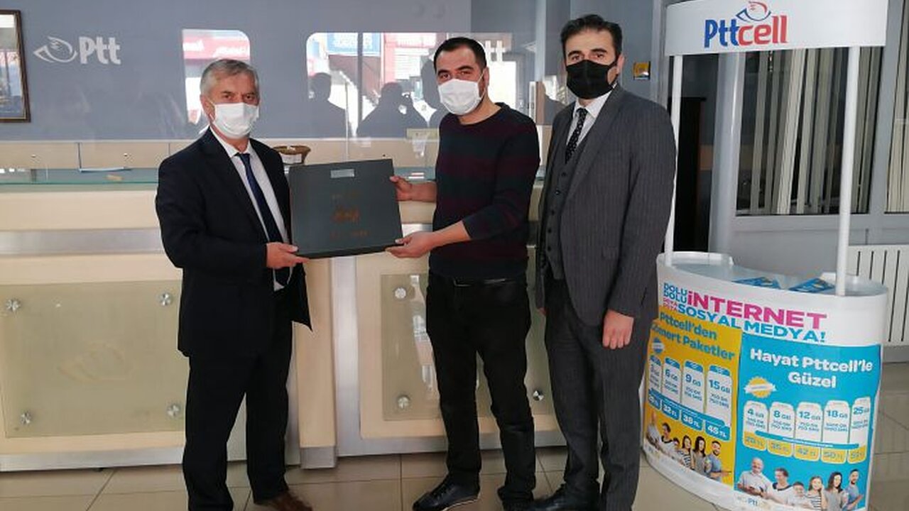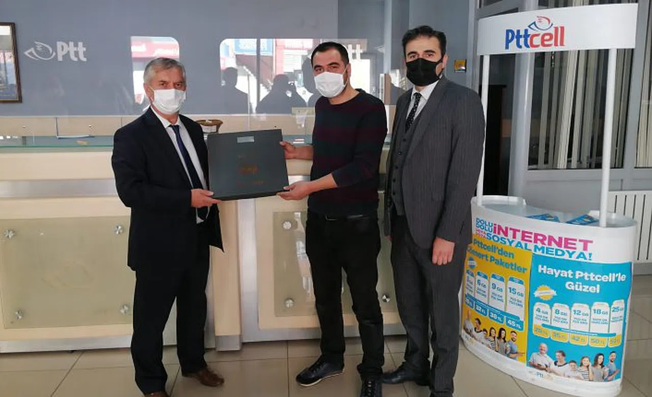 Gümüşhane PTT Merkezi iş yerine gelen ve 181.müşteri olan Fatih Akhan’a çeşitli hediyeler takdim edildi.