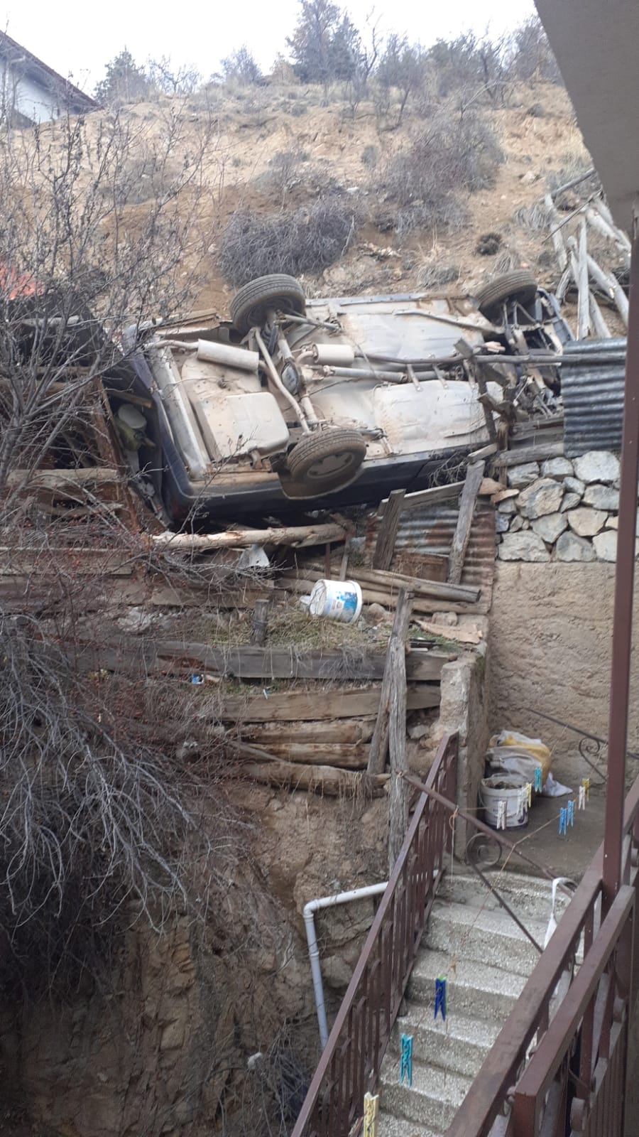 Freninin tutmadığı ve direksiyonunun kitlendiği iddia edilen araç, sürücüsünün hakimiyetini kaybetmesi sonucu yaklaşık 6-7 metre aşağıda bulunan evin önündeki kümese çarpıp ters dönerek durabildi.
