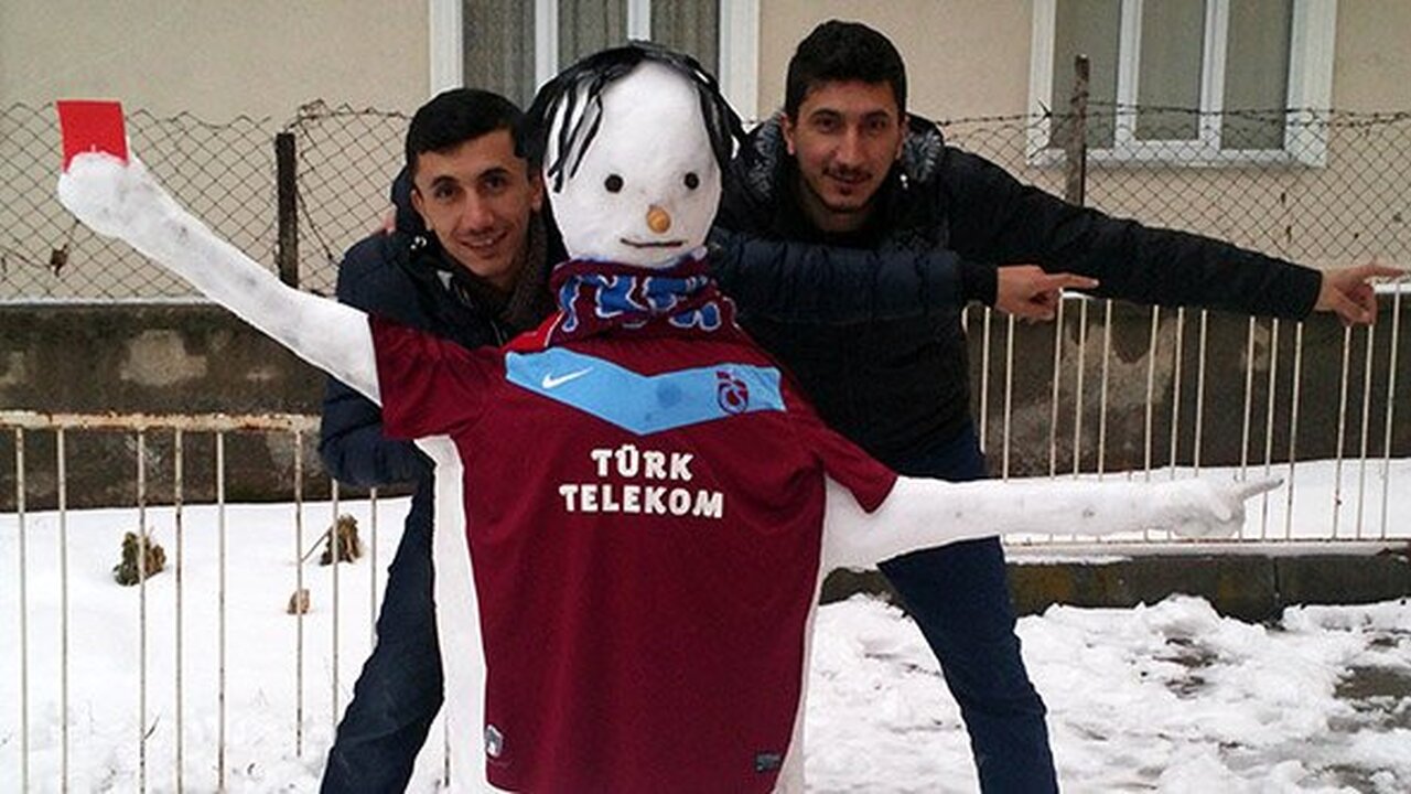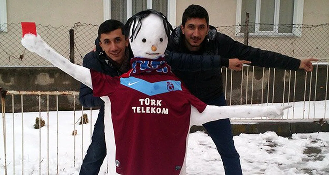 Koyu bir Trabzonspor taraftarı olan Keskinoğlu kardeşler, hakeme gösterdiği kırmızı kartla bir anda hem ülke hem de dünya spor gündemine giren Salih Dursun’un hareketini kardan adama uyarladı.