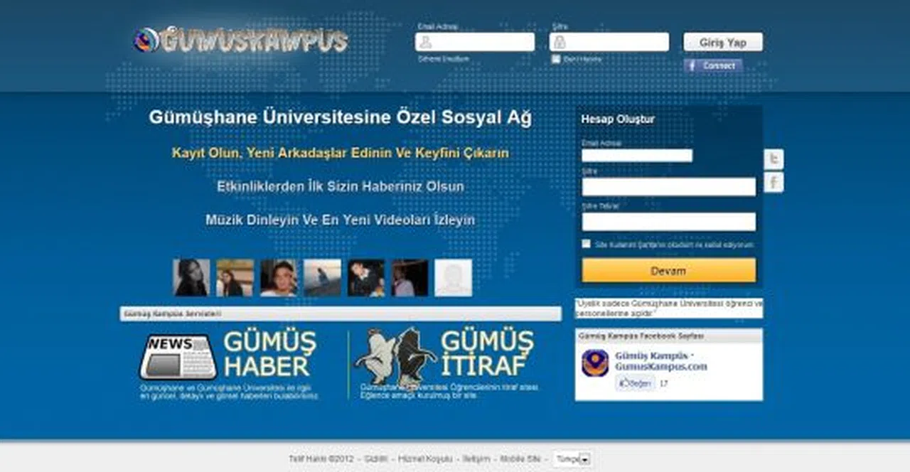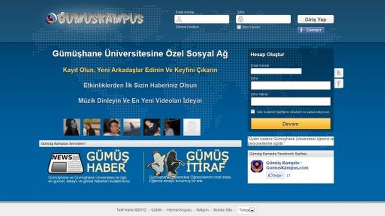 Gümüşhane Üniversitesi Bilgisayar Programcılığı 2. sınıf öğrencilerinden Umut Şengül Gümüşhane Üniversitesi öğrencileri için bir sosyal ağ sitesi açtı.