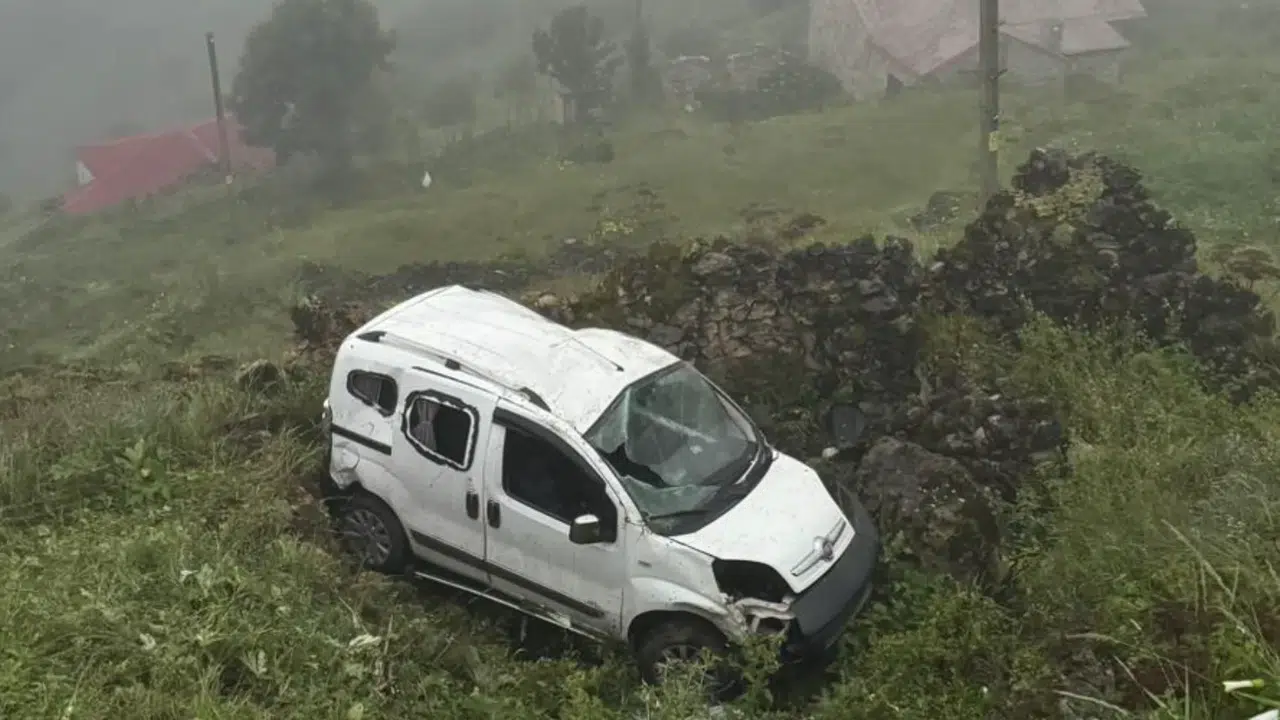 Gümüşhane’nin merkeze bağlı Dumanlı köyü sınırlarında yer alan Santa Harabeleri yolunda sis nedeniyle kontrolden çıkan hafif ticari araç şarampole yuvarlandı. Kazada aynı aileden 5 kişi yaralandı.