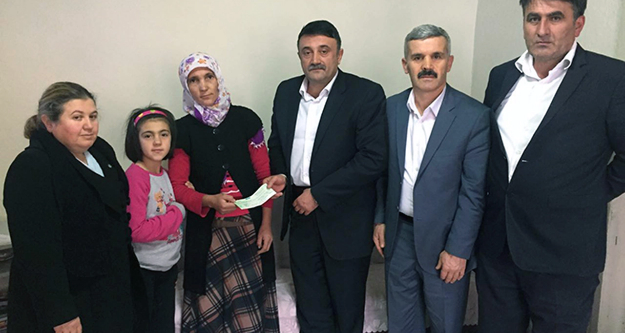 Gümüşhane Üniversitesinde temizlik görevlisi olarak çalışırken kampüs alanındaki 50 metrelik uçuruma yuvarlanan otomobilde hayatını kaybeden 43 yaşındaki İhsan Kurt’un ailesine Hak İş’e bağlı Hizmet İş Sendikası tarafından 30 Bin lira ödeme yapıldı.