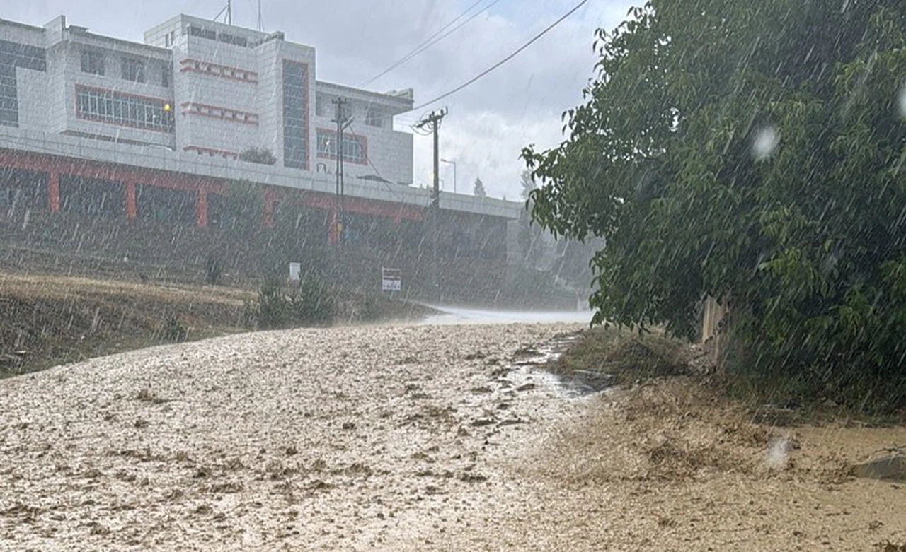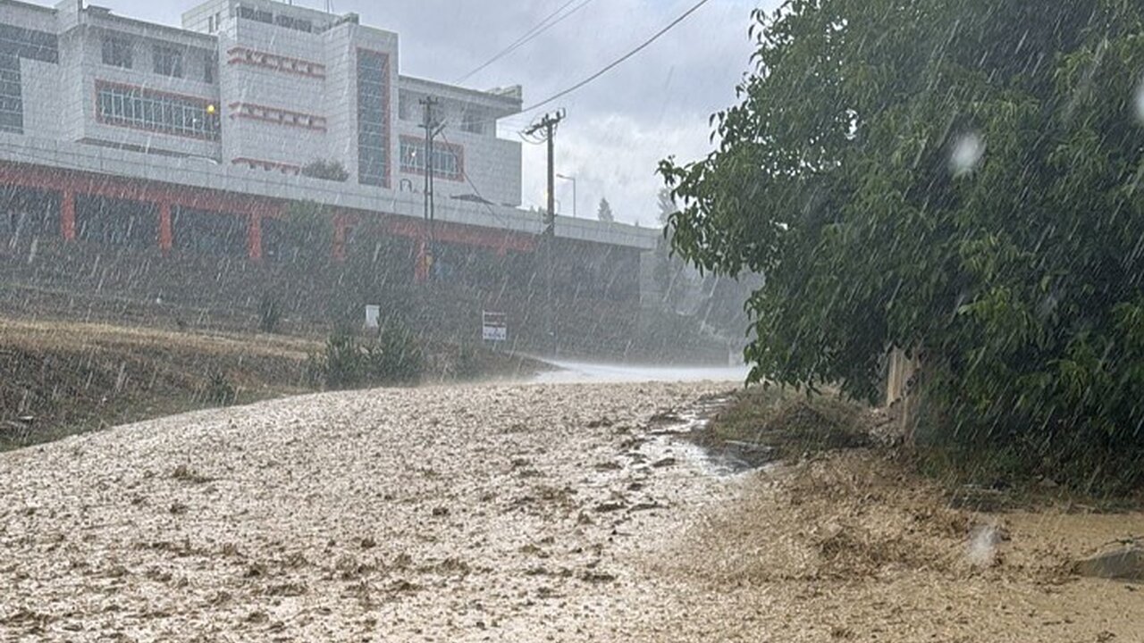 Özellikle ilçe merkezi ve çevre yolunda etkili olan yağış nedeniyle yollar göle dönerken ulaşım kontrollü olarak sağlandı.
