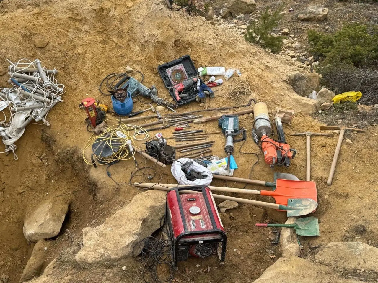 Şahısların kaçak kazı sırasında kullandığı profesyonel ekipmanlar dikkat çekti. Ele geçirilen 114 parça malzeme arasında 11 metre uzunluğunda el yapımı basamaklı merdiven, jeneratör, vinç, carot makinesi, hiltiler, gaz maskeleri ve çok sayıda delici-kesici alet yer alıyor. İşte ele geçirilen malzemeler: 3 adet cep telefonu, 1 adet matkap ve çantası, 1 adet carot makinesi, 1 adet jeneratör, 2 adet hilti, 1 adet vinç, 1 adet inşaat demiri, 2 adet çekiç, 2 adet spiral ucu, 1 adet balta, 1 adet keser, 2 adet kırıcı murç, 1 adet çelik dübel, 1 adet ingiliz anahtarı, 1 adet metre, 1 adet pense, 28 adet matkap ucu, 1 adet gaz maskesi, 4 adet seyyar kablo, 1 adet el küreği, 3 adet ampül, 3 adet tornavida, 2 adet calasgar, 1 adet 60 metre halat, 1 adet piknik tüpü, 1 adet levye, 3 adet kürek, 40 metre seyyar kablo, 1 adet balyoz, 2 adet kazma, 1 adet el yapımı 11 metre uzunluğunda basamaklı merdiven.