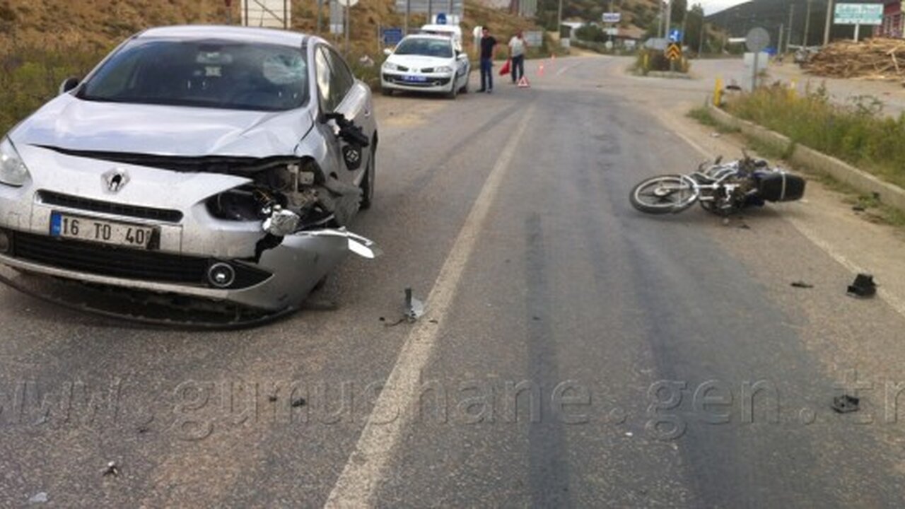 İlçe girişinde bulunan kavşakta meydana gelen kazada, Kelkit-Alucra istikametine giden Erhan Palas (32) yönetimindeki 16 TD 408 plakalı otomobil ile karşı yönden gelen Hüseyin Tarhan (28) yönetimindeki plakasız motosiklet Şiran ilçe merkezi girişindeki kontrolsüz kavşakta çarpıştı.