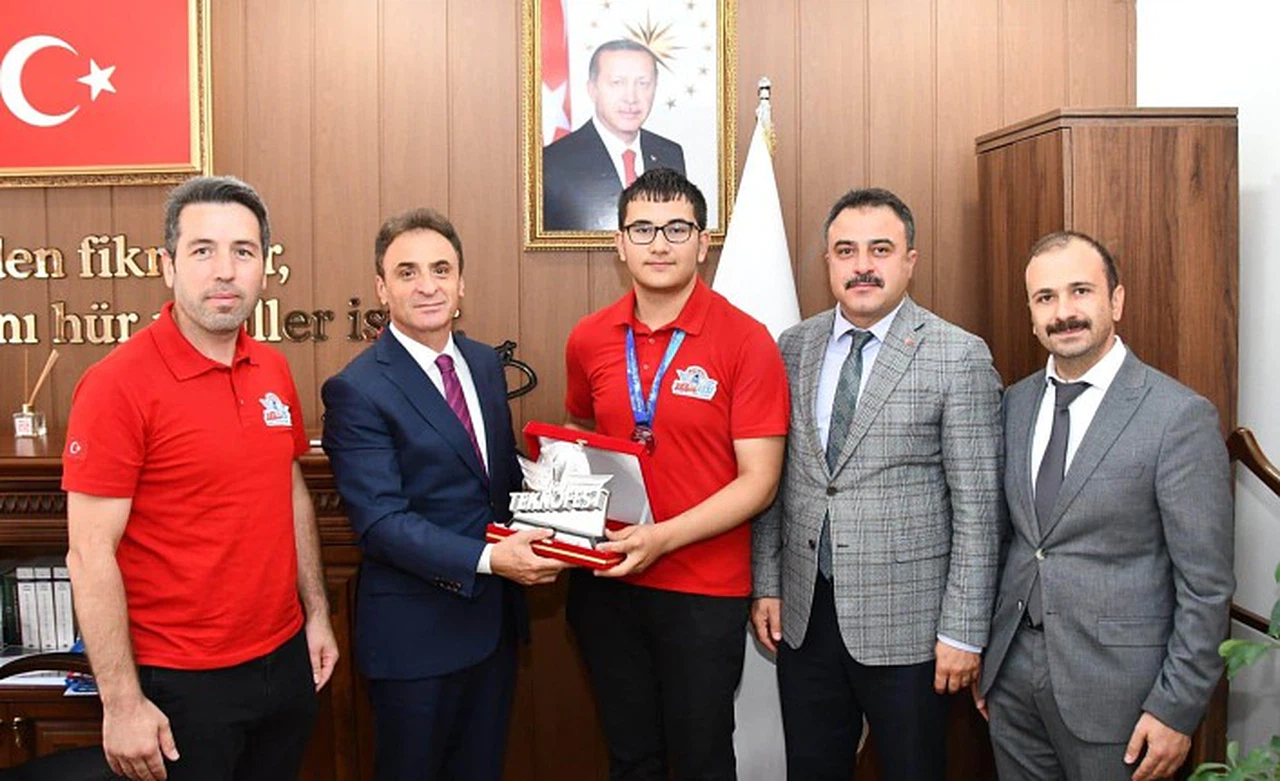 Öğretmeniyle birlikte Kılıç’a başarı belgesini ve teşekkür hediyesini takdim eden İl Milli Eğitim Müdürü Şener Doğan, “Gençlerimizin bu tür önemli başarılar elde etmesi, bizleri gururlandırıyor. Eğitimdeki yenilikçi yaklaşımlar ve öğretmenlerimizin rehberliği ile öğrencilerimizin daha da büyük başarılara imza atacağına inanıyorum. Bu başarıda emeği geçen herkesi tebrik ediyor, öğrencimizin daha nice zaferlere imza atmasını temenni ediyorum” dedi.