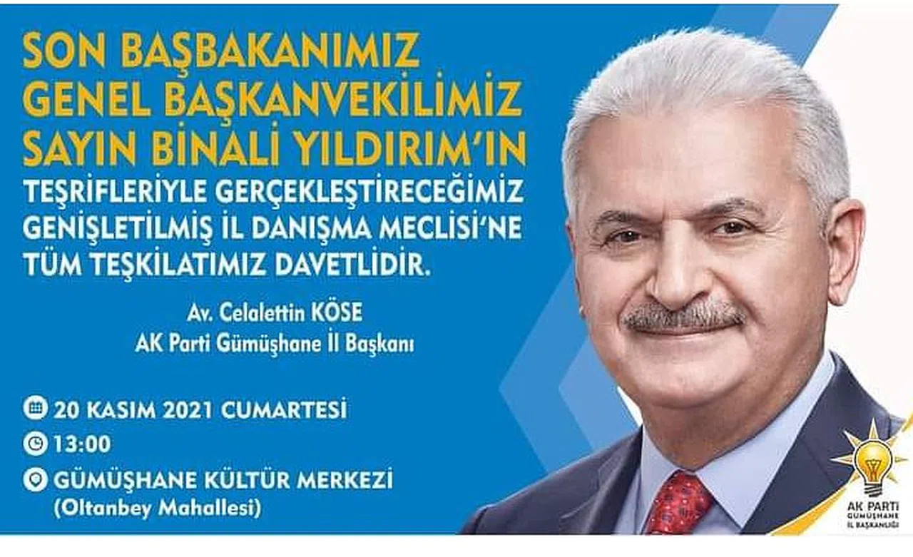 Cumartesi günü yapılacak olan AK Parti Gümüşhane İl Başkanlığı Genişletilmiş İl Danışma Meclisi programı için Gümüşhane’ye gelecek Binali Yıldırım’ın şehirde bazı ziyaretlerde bulunması da bekleniyor.