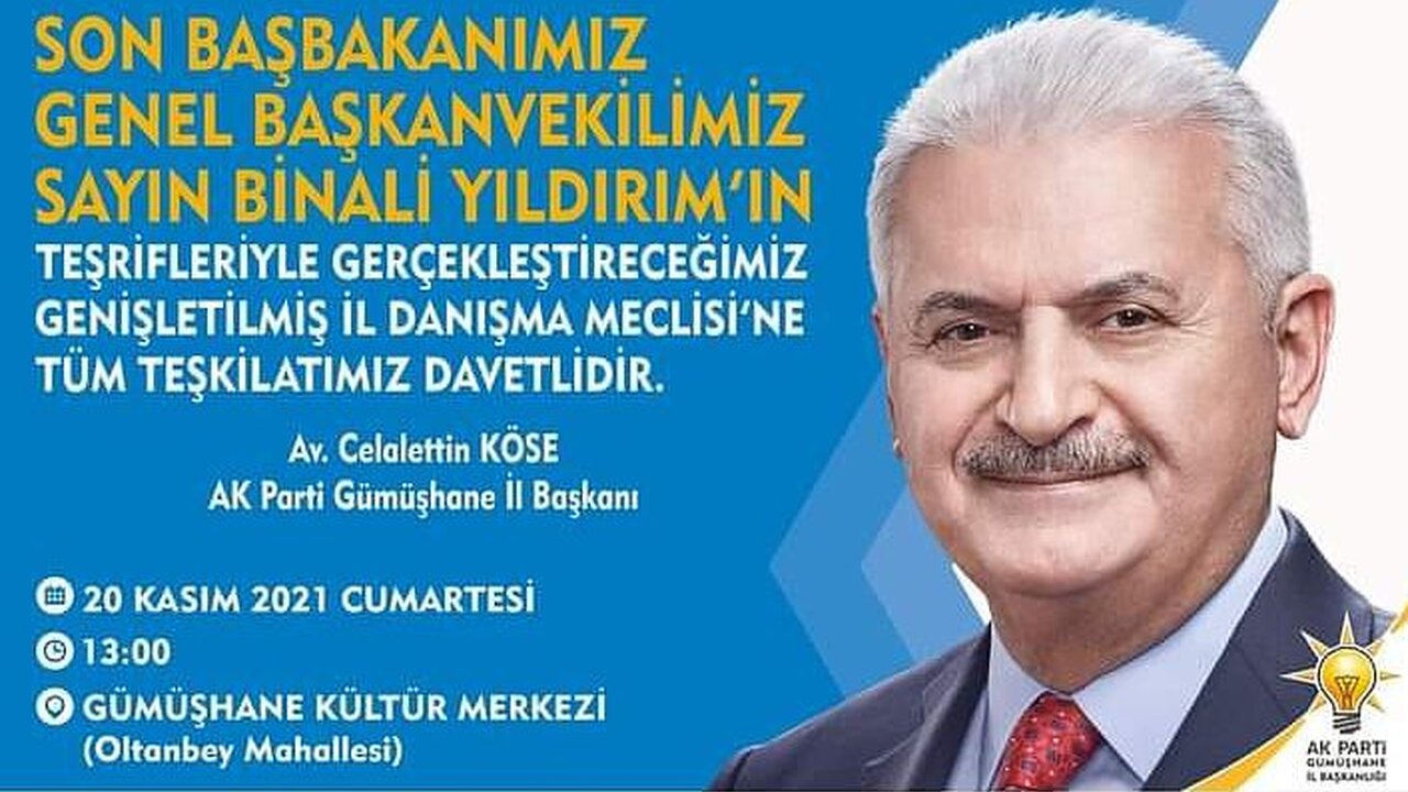 Konu ile ilgili Ak Parti Gümüşhane İl Başkanlığından yapılan açıklamaya göre son Başbakan Binali Yıldırım’ın Cumartesi günü saat 10.30 da Gümüşhane’de olması bekleniyor. Şehirde bir dizi ziyaret yapması beklenen Binali Yıldırım’ın ziyaretlerinin ardından saat 13.00 de Atatürk Kültür Merkezinde yapılacak olan AK Parti Gümüşhane İl Başkanlığı Genişletilmiş İl Danışma Meclisi programına katılacak, AK Parti İl Başkanı, milletvekilleri, belediye başkanları, ilçe başkanları ve bütün teşkilatların da hazır bulunacağı programın ardından Binali Yıldırım şehirden ayrılacak.