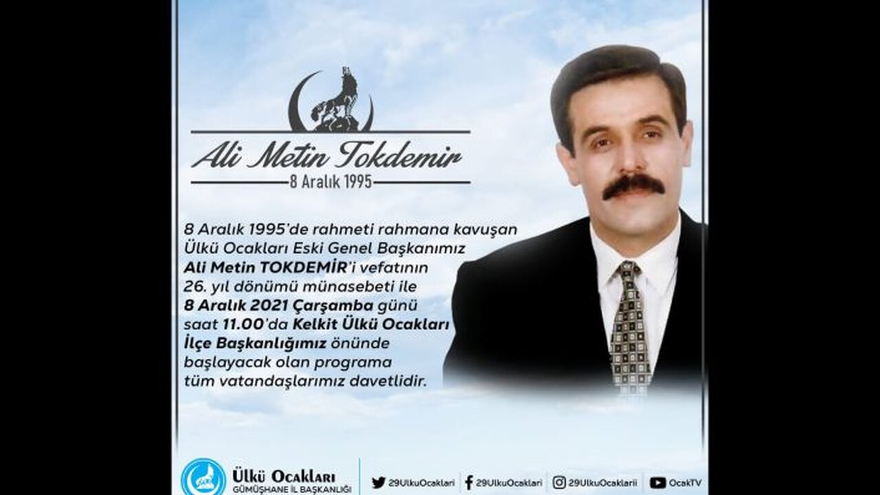 Ülkü Ocakları Genel Başkanlığı yapan merhum Tokdemir’in Başbuğ Alparslan Türkeş'in talimatıyla 1995 yılında MHP’den Gümüşhane milletvekili adayı olduğunu, 8 Aralık 1995 tarihinde Maçka yakınlarında geçirdiği trafik kazası sonucu vefat ettiğini hatırlatan Alp, “Yiğit dava adamı Ali Metin Tokdemir 36 yaşında Hakk'a yürüdü. Ülkücü camianın efsanevi isimlerinden olan Tokdemir, çalışkan ve mücadeleci bir dava adamıydı. Kısa ömründe çok büyük işler yaptı. Siyasete küçük yaşlarda giren bu muhterem insan, Ülkü Ocakları, Ülkücü Gençlik Derneği ve Ülkü Yolu Derneği'nin Aydın şubesinde görev yaptıktan sonra Eskişehir Ülkü Ocaklarını kurdu. Üniversite yılları siyasetle iç içe geçti. Merhum Tokdemir Türk-İslam ülküsünü rehber edinen ve aksiyon haline getiren kamil bir insandı. Tokdemir, Mevlana'nın ifadesiyle olduğu gibi görünen, göründüğü gibi olan, ilmiyle amil bir Müslüman'dı. İnançları için tüm zorluklara göğüs geren Tokdemir, azimli ve cesaretliydi. O iman, aşk, aksiyon ve karakter adamıydı. Davası "İlay-ı kelimetullah ve Nizam-ı Alem" düşüncesini cihana hakim kılmaktı” dedi.