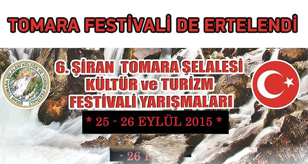 Gümüşhane’nin Şiran ilçesinde 31 Temmuz - 2 Ağustos tarihlerinde düzenlenmesi planlanan 6. Tomara Şelalesi Kültür ve Turizm Festivali ertelendi.