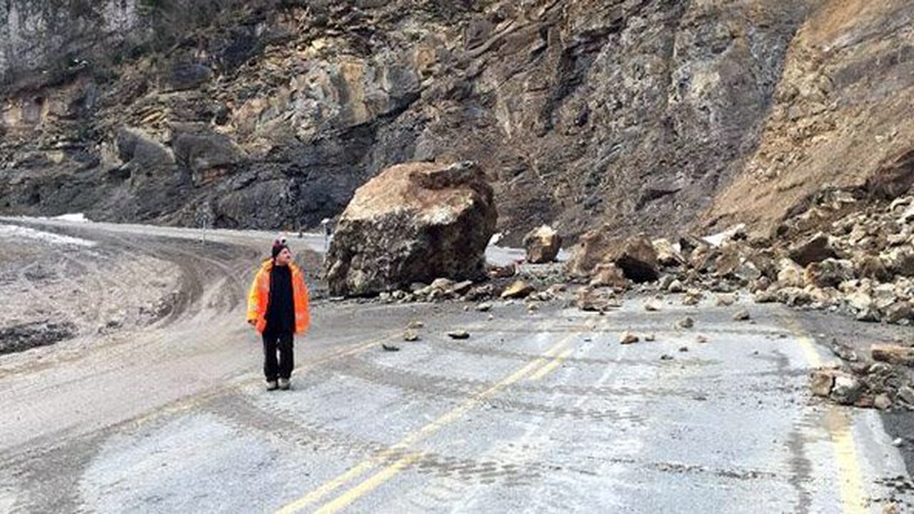 Yola düşen kayanın Karayolları ekipleri tarafından kırılarak kaldırılması için çalışma devam ederken, trafik ekipleri de yola çıkan araçları dikkatli olmaları konusunda uyardı.