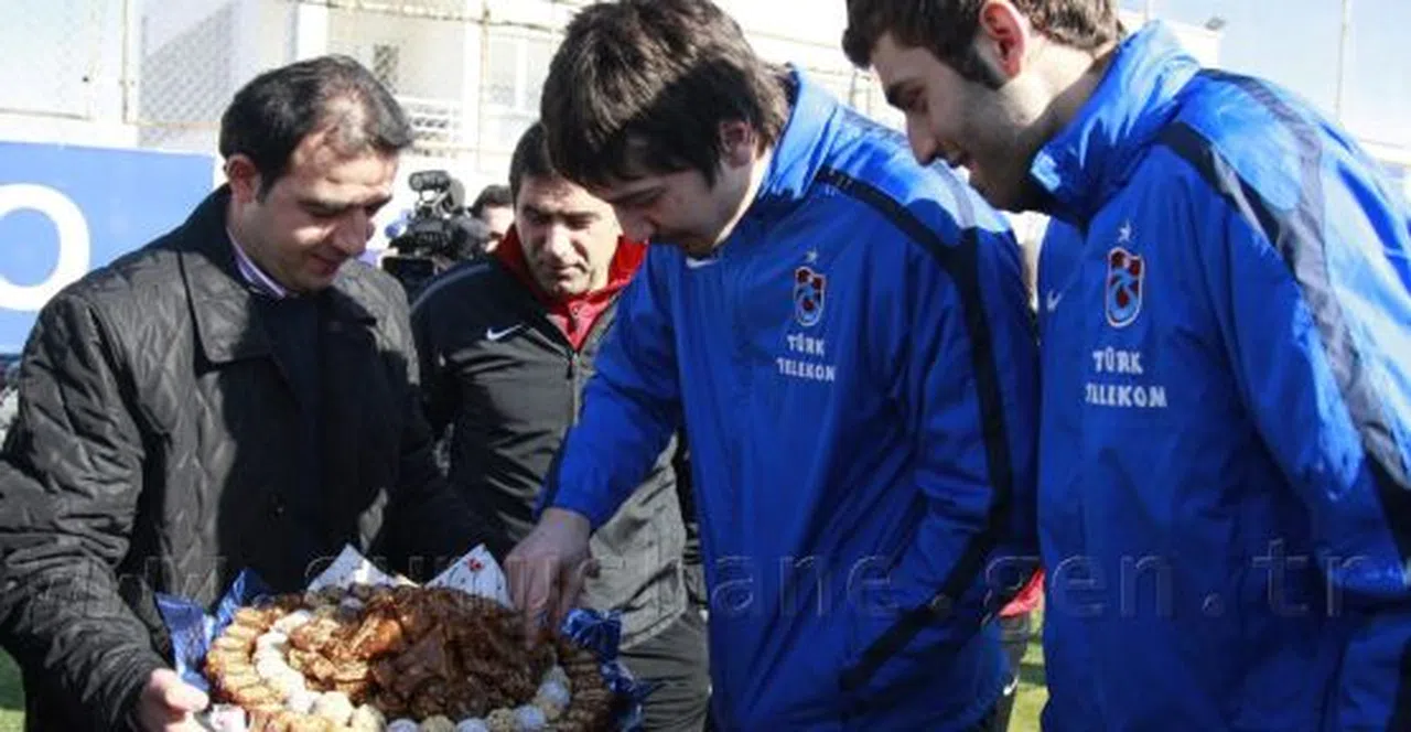 PSV Eindhoven maçı hazırlıklarını sürdüren Trabzonspor'a, Gümüşhane Pestil-Köme Üreticileri Birliğinden pestil ve köme dopingi.