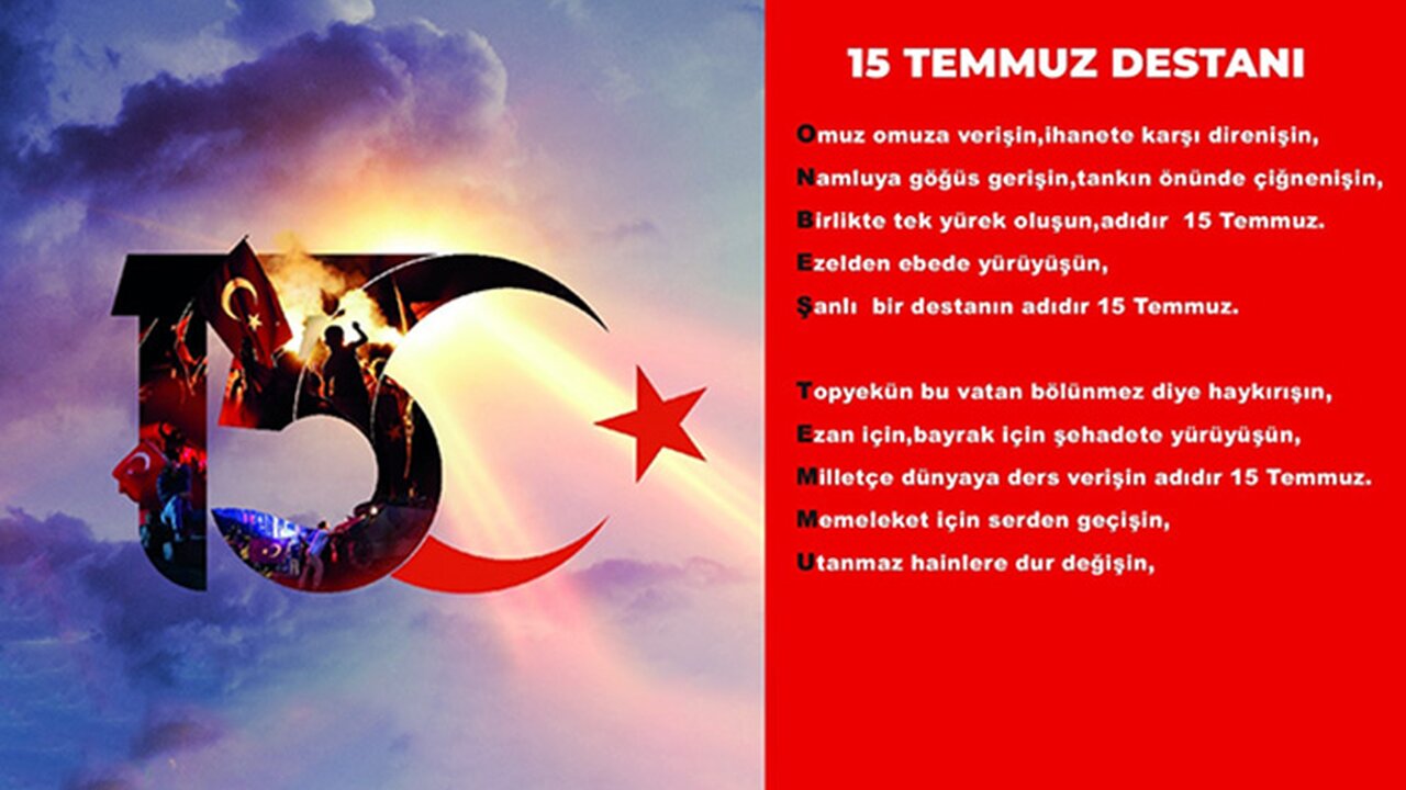 Gümüşhane Memur-Sen ve Sağlık-Sen Engelli komisyonu başkanı ve Gümüşhane’nin akrostiş (*) şiir üstatlarından Coşkun Tuncer, 15 Temmuz destanını yazdığı şiirle anlattı.