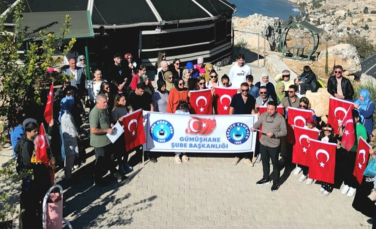 Ellerinde Türk bayraklarıyla seyir tepesinde program düzenleyen Türk Büro-Sen üyeleri adına konuşan Şube Başkanı Faruk Ünlü, “19 Mayıs 1919'da Ulu Önder Mustafa Kemal Atatürk'ün Samsun'a çıkarak Milli Mücadeleyi başlatıp, 29 Ekim 1923 tarihinde de “Türk Milletinin karakterine ve adetlerine en uygun olan idare, Cumhuriyet idaresidir.” diyerek ilan ettiği Cumhuriyet, Türk Milletine bırakılmış en büyük miras ve vazgeçilmez bir değerdir.