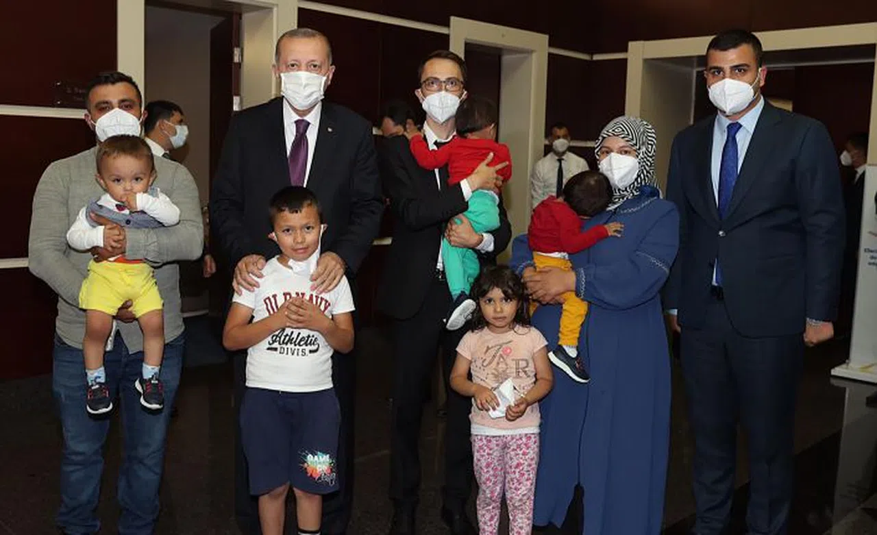 AK Parti Genel Merkezinde gerçekleşen görüşmede Şen çiftini tebrik eden Cumhurbaşkanı Erdoğan, isminin üçüzlere verilmesinin kendisini mutlu ettiğini söyledi. Üçüzlerle vakit geçiren Cumhurbaşkanı Erdoğan, miniklere çeşitli hediyeler verdi.