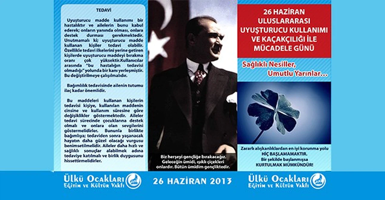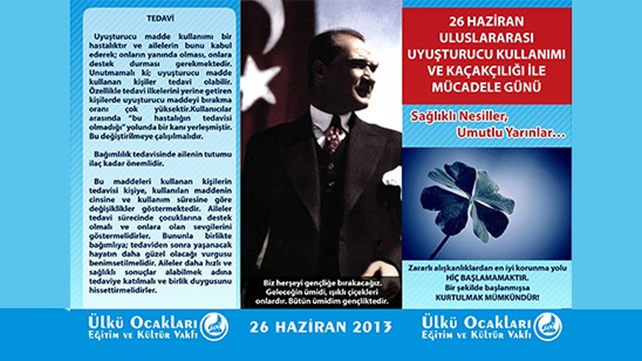Gün dolayısıyla Türkiye’nin en köklü gençlik hareketi olan Ülkü Ocakları Eğitim ve Kültür Vakfı olarak sosyal sorumluluk projeleri kapsamında “Sağlıklı Nesiller, Umutlu Yarınlar” sloganıyla yola çıkarak çalışma yaptıklarını kaydeden Kara, “Çalışmanın amacı; toplumda ‘Uyuşturucu Bağımlılığı ve Kaçakçılığı’ ile alakalı farkındalık yaratmak, konunun ciddiyetine dikkat çekmektir. Ülkemizin her köşesine hazırladığımız el ilanları dağıtılmış, afişlerimiz asılmıştır. Gümüşhane ilimizde kent merkezinde de vatandaşlarımıza el ilanlarını dağıtmış bulunuyoruz. Sosyal medya üzerinden açtığımız ‘TürkGençliği UyuşturucuyaHayırDiyor’ başlığı ile Türkiye gündemine girerek milyonlarca kullanıcıya ulaşılmıştır. Ülkü Ocakları olarak toplumsal sorunlar üzerine çalışmalarımızın artarak devam edeceğini kamuoyuna saygıyla duyururuz.” dedi.