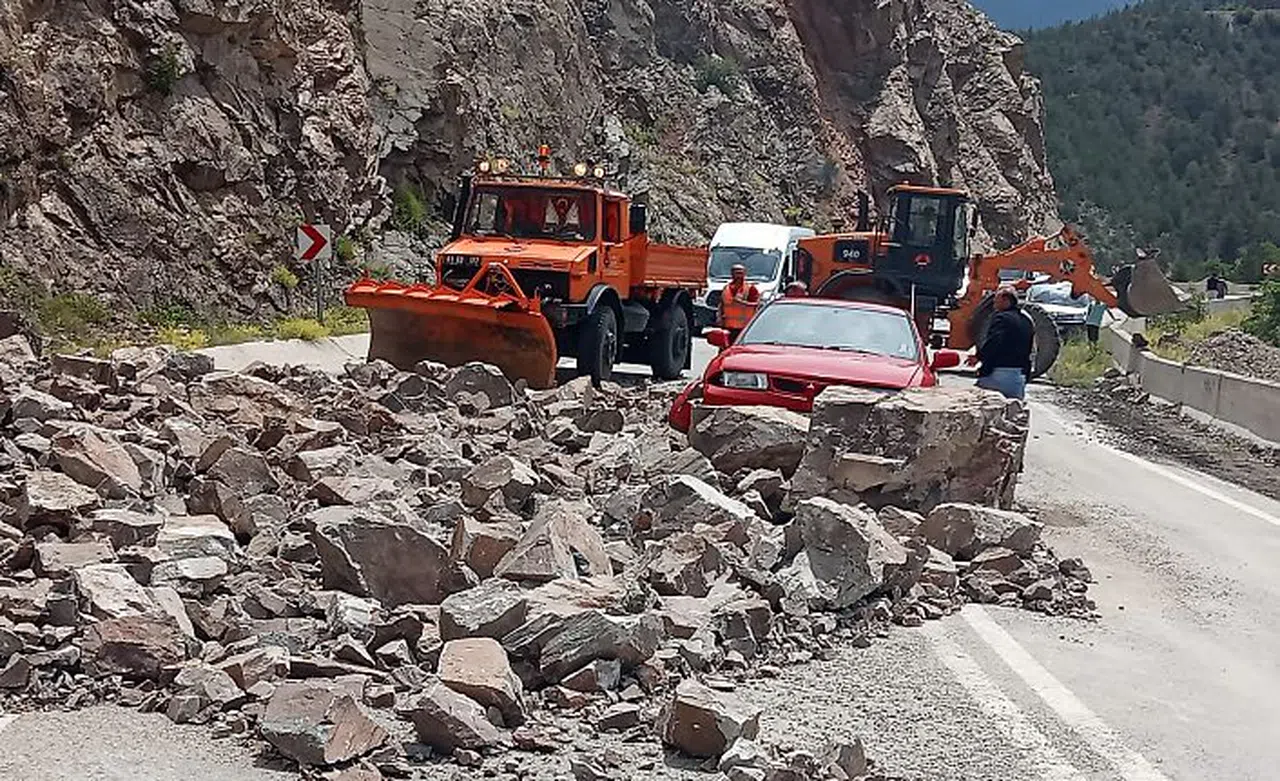 İhbar üzerine bölgeye sevk edilen Karayollarına ait iş makinaları 1 saatlik çalışmayla yolu tekrar kullanıma açtı.