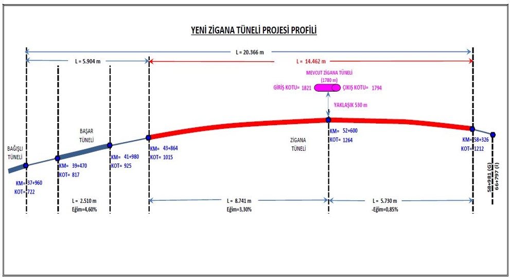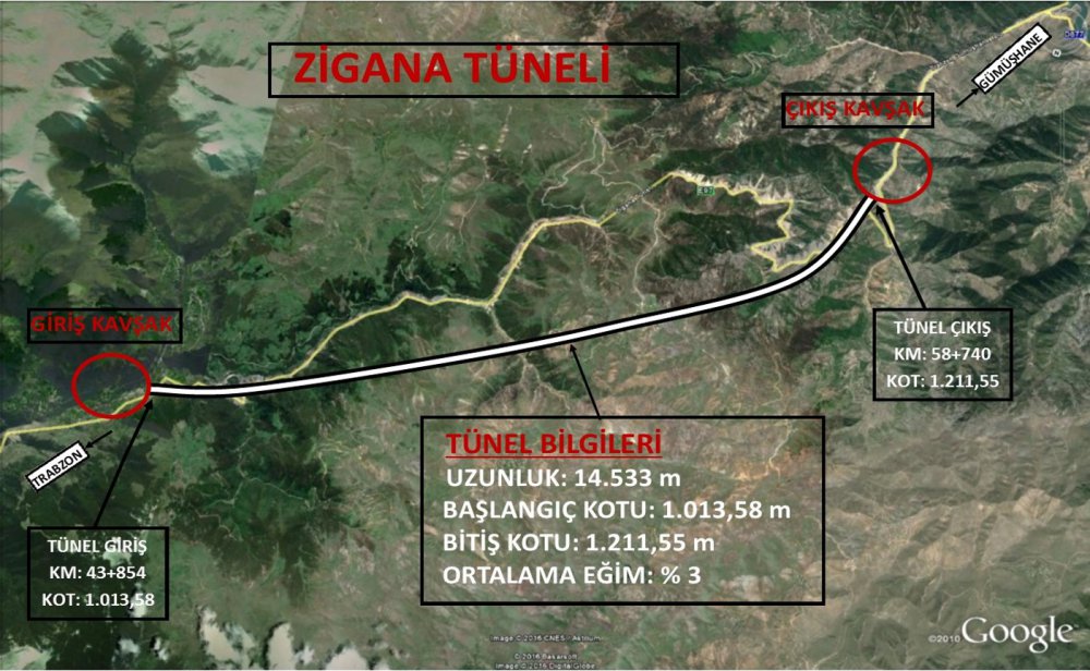 Gümüşhane-Trabzon karayolu üzerinde, Doğu Karadeniz'i Ortadoğu, Kafkaslar ve İran'a bağlayan Tarihi İpek Yolu üzerinde yılın dört mevsiminde de zorlu şartları nedeniyle reklamlara bile konu olan mevcut Zigana tünelinin yerine Gümüşhane yönünde Nisan 2016, Trabzon yönünde ise Ağustos 2016'da başlamıştı.