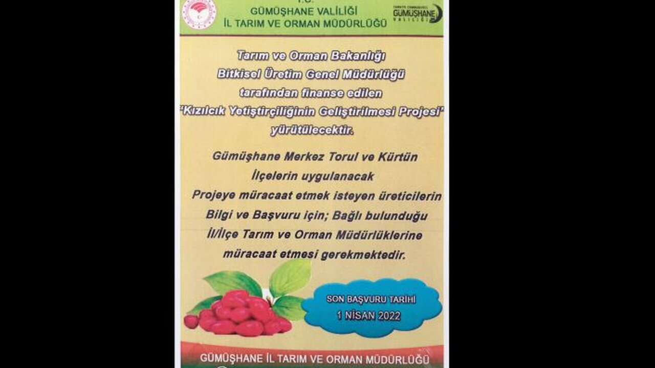 Bitkisel Üretim Genel Müdürlüğünce yürütülen "Tarım Arazilerinin Kullanımının Etkinleştirilmesi Projesi" kapsamında Tarım ve Orman İl Müdürlüğü tarafından “Kızılcık Yetiştiriciliğinin Geliştirilmesi” projesi hayata geçirildi.