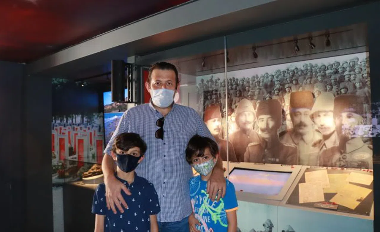 Müzeyi çocuklarıyla birlikte ziyaret eden Gökhan Bozkır ise çok etkilendiklerini belirterek, “Çocuklarıma atalarımızın bu vatanı bize nasıl emanet ettiğini göstermek için sergiye getirdim. Çanakkale savaşlarının nasıl zorlu geçtiğini az çok burada görebildik. Mermilerin birbirine geçmesini, çocuğuma da göstermek istedim. Atalarımızın nasıl bu vatanı bize emanet ettiğini göstermek ve o bilinci oluşturmak için çocuğumu da buraya getirdim" diye konuştu.