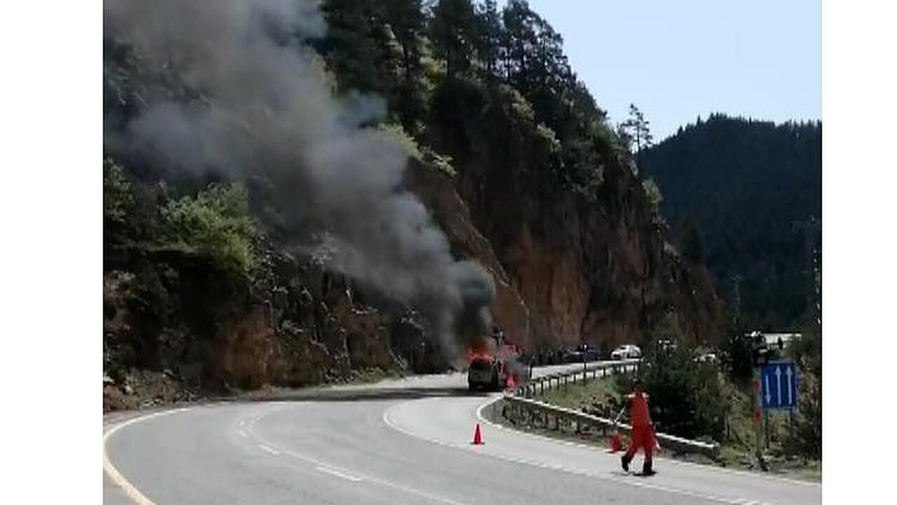 Doğu Karadeniz’i Doğu Anadolu’ya bağlayan en önemli geçitlerden Gümüşhane’nin Torul ilçesi sınırlarındaki Zigana Dağı geçidinde hareket halindeyken alev alan araç yolda korkulu anların yaşanmasına neden oldu.