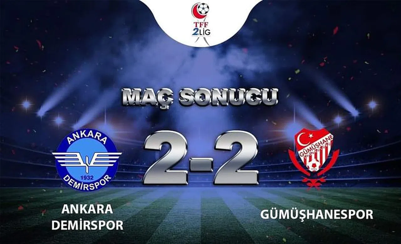 Misli.Com 2.lig, Beyaz Grupta mücadele eden temsilcimiz Gümüşhanespor, ligin 5.haftasında deplasmanda karşılaştığı Başkent temsilcisi Ankara Demirspor ile 2-2 berabere kaldı.
