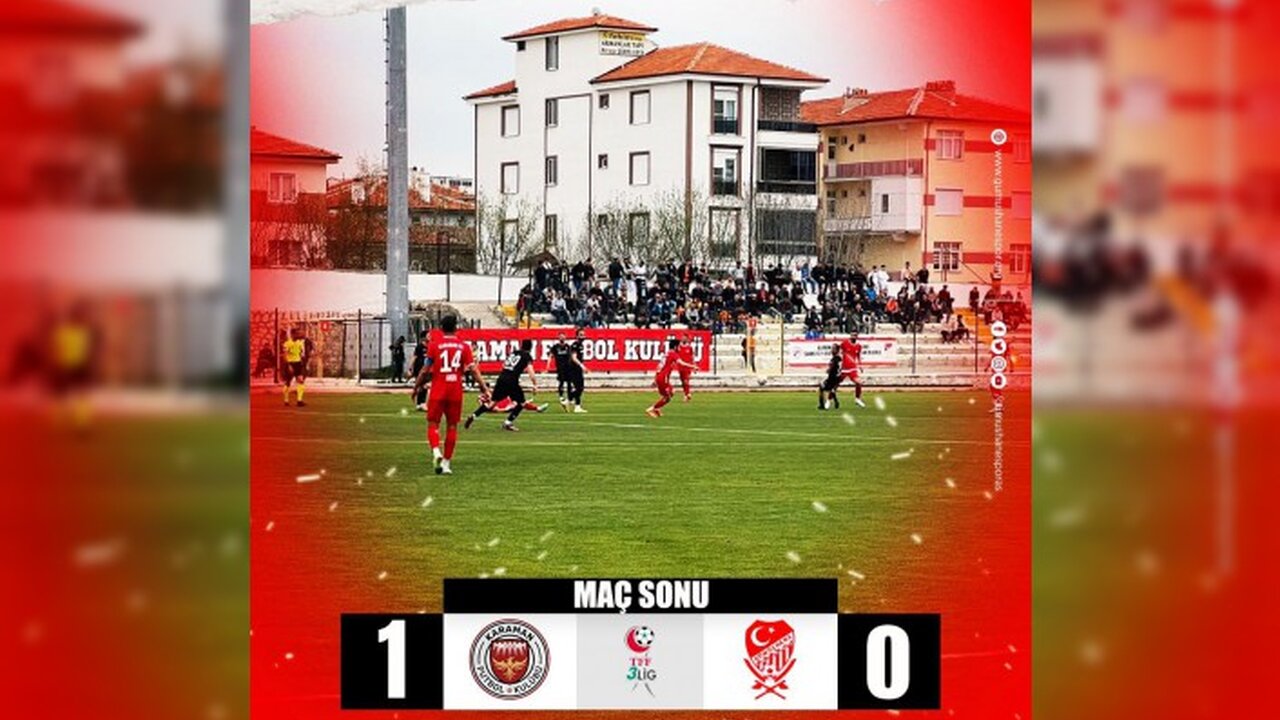 Şampiyonluk kovalayan ev sahibi ekip Karaman FK, zorlu mücadeleye oldukça hızlı başladı. Taraftarının da desteğini arkasına alan Karaman FK ilk dakikalarda kurduğu baskının sonucunu aldı. Birde buna temsilcimizin son haftalarda özellikle deplasman karşılaşmalarında erken gol yeme hastalığı eklenince, ev sahibi ekip 12.dakikada Selim Dilli ile 1-0 öne geçti.