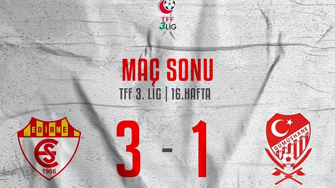 TFF 3.Lig 1. Grupta mücadele eden temsilcimiz Gümüşhane Sportif Faaliyetler A.Ş. sezonun ikinci yarısının ilk maçında deplasmanda karşılaştığı Edirnespor’a 3-1 mağlup oldu.