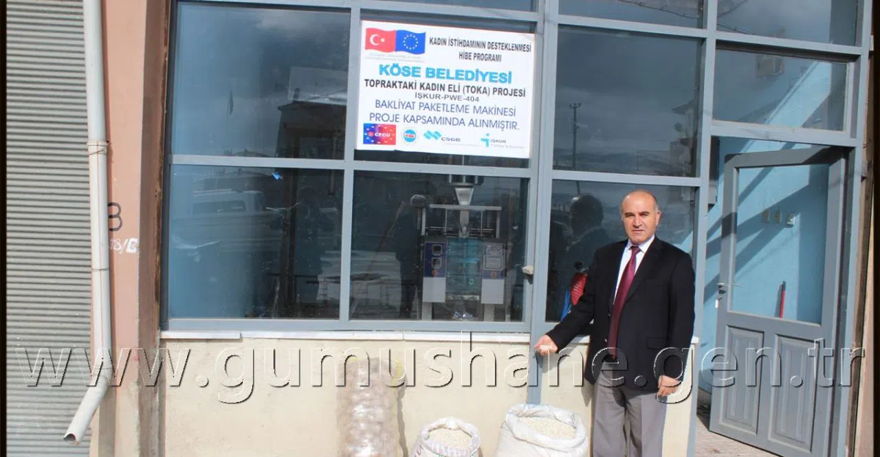 Köse Belediye Başkanı Şerif Aygün, ilçede kuru fasulye yetiştiriciliğine yönelik olarak Belediye Başkanlığınca hazırlanan ve geçtiğimiz Temmuz ayında sona eren Topraktaki Kadın Eli (TOKA) proje kursiyerleri tarafından ekimi yapılan uygulama tarlasından elde edilen fasulyeleri Gümüşhanespor’a hediye etti.
