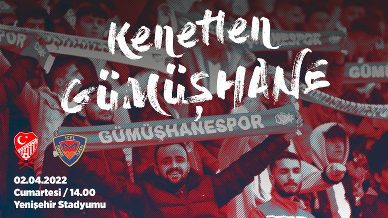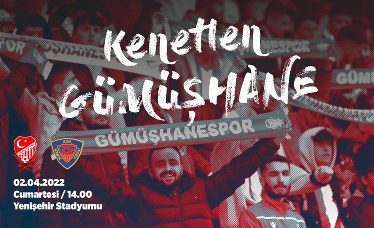 “2 Nisan Cumartesi saat 14.00’te Gümüşhane Yenişehir Stadyumu’nda buluşalım” denilen açıklamada “Önümüzde kısa ve zorlu bir yol bulunmaktadır. Bu zorlu yolda merdivenleri adım adım çıkmamız gerekmektedir. Öncelikle hedefimiz Cumartesi günü sahamızda ağırlayacağımız İçel İdmanyurdu Spor Kulübü karşılaşmasında sahadan sizlerinde desteğiyle galibiyetle ayrılmak olacaktır. Yaşlı, genç, büyük, küçük bütün taraftarlarımızı Cumartesi günü takımımıza destek vermeye bekliyoruz. Karşılaşmanın biletleri yönetimimiz tarafından karşılanacak olup tüm taraftarlarımız maçımızı tribünde ücretsiz olarak izleyebilecektir” ifadeleri kullanıldı.
