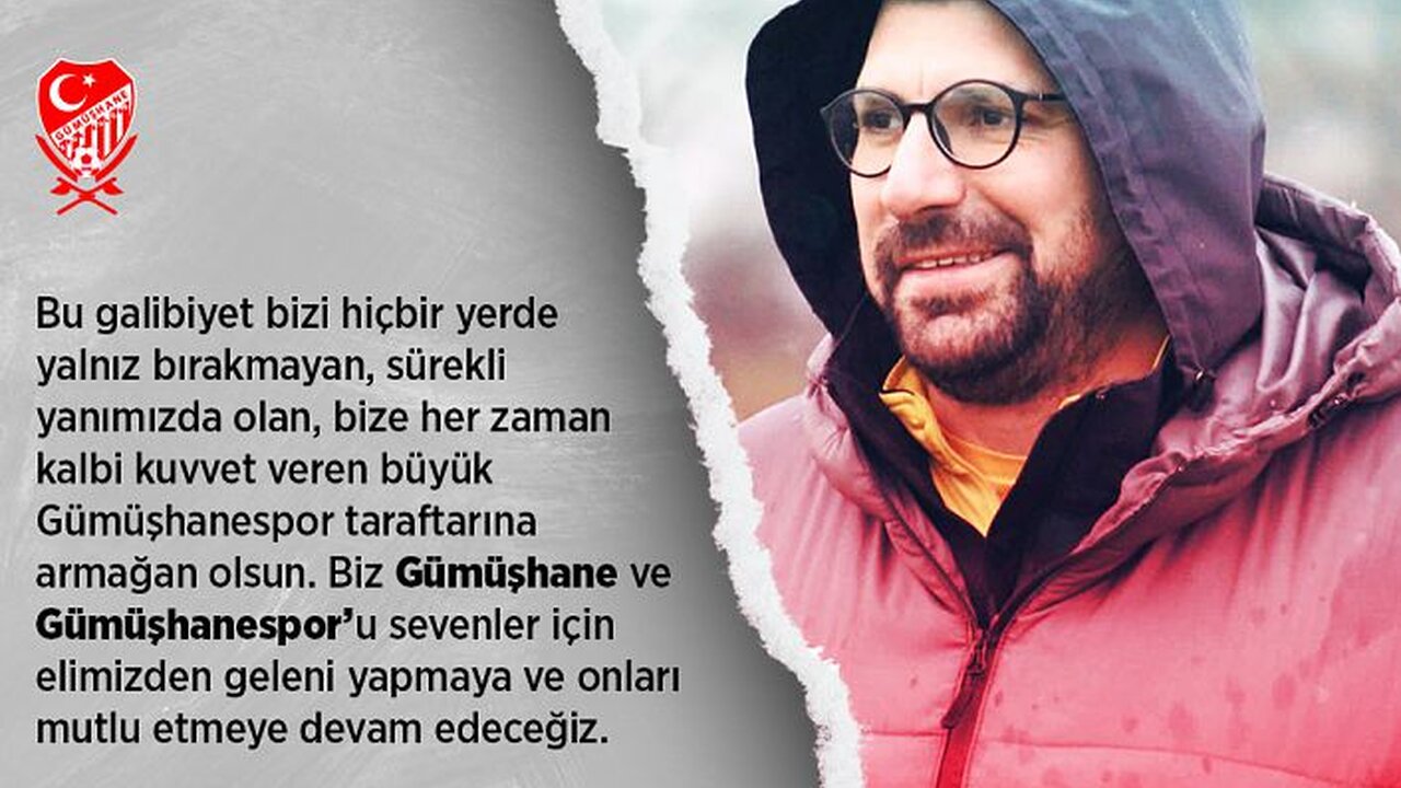 TFF 3.lig, 2.grupta mücadele eden ve ikinci devreye üst üste 2 galibiyetle başlayan temsilcimiz Gümüşhane Sportif Faaliyetler A.Ş'nin teknik direktörü Murat Parlak, bu haftaki galibiyeti taraftarlara armağan etti.