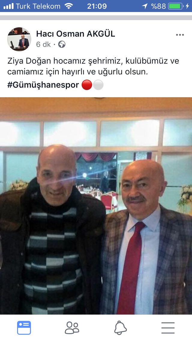 Öte yandan AK Parti Gümüşhane Milletvekili ve Gümüşhanespor Onursal Başkanı Hacı Osman Akgül’de yeni teknik direktör Ziya Doğan’la çekildiği fotoğrafı sosyal medya hesaplarından “Ziya Doğan hocamız şehrimiz, kulübümüz ve camiamız için hayırlı ve uğurlu olsun” mesajıyla birlikte paylaştı.