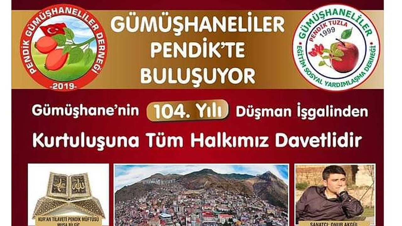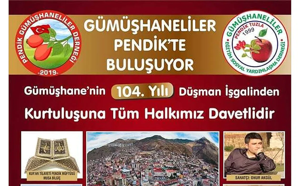 Gümüşhane'nin düşman işgalinden kurtuluşunun 104.yıldönümü İstanbul Pendik'te düzenlenecek etkinlikle kutlanacak.