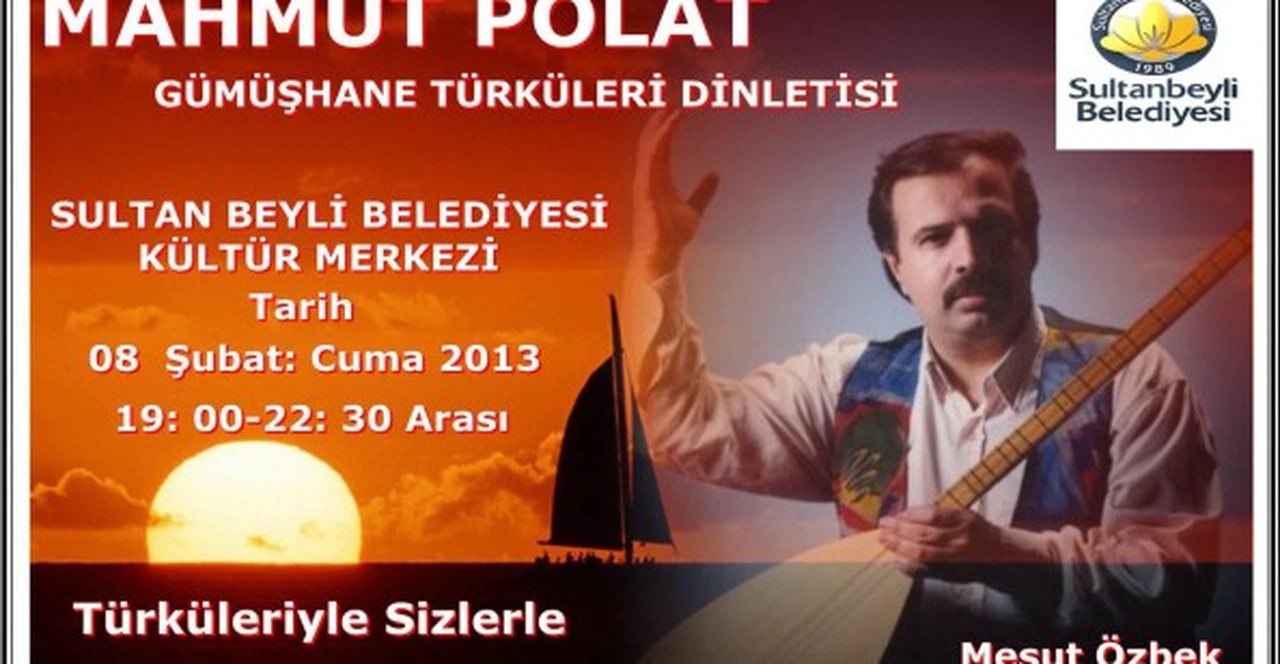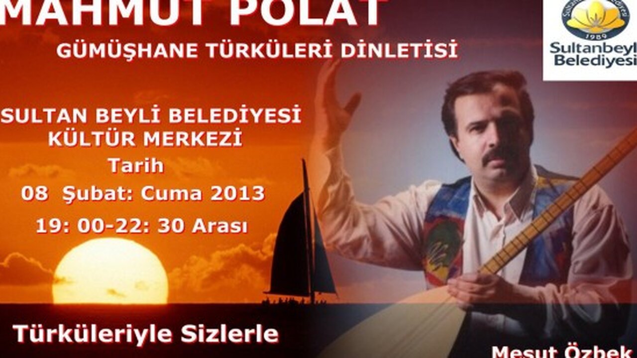 8 Şubat tarihinde saat 19.00’da Sultanbeyli Belediyesi Kültür Merkezinde düzenlenecek olan programda Sultanbeyli Belediye Başkanı Hüseyin Keskin’in yapacağı açılış konuşmasının ardından sahne alacak olan Polat, Gümüşhane türkülerinden derlediği yeni albümünden bir demet sunacak.
