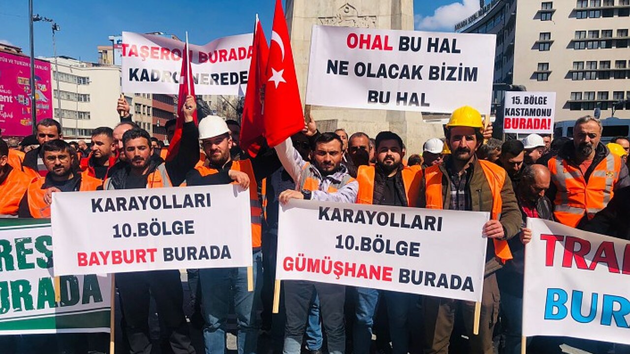 Aralarında Gümüşhane’deki Karayolları Şube Şefliğinde görev yapan 18 çalışanın da yer aldığı grup Ankara Ulus’ta buluşarak “Taşeron burada kadro nerede”, “Karayolları asıl işi yapan taşeron işçilerine hakkı olan kadro verilsin’, “Ohal bu hal ne olacak bizim bu hal” yazılı dövizlerle taleplerini dile getirdi.
