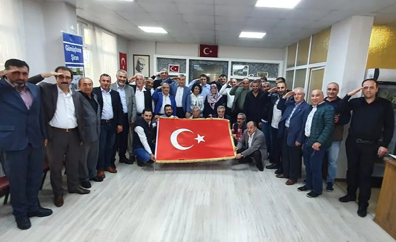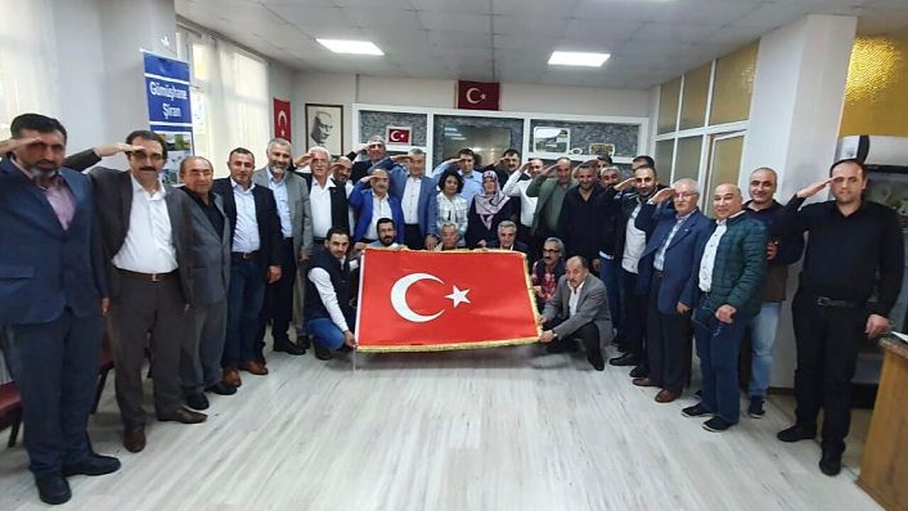 Açıklama sonrası ŞİDEF yönetimi Türk bayrağı açarak Mehmetçik selamı yaptı.