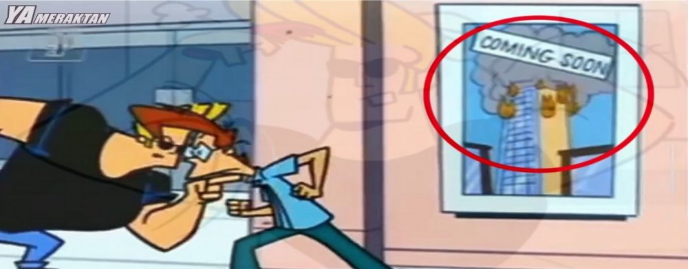 Johnny Bravo adlı çizgi filmin bu bölümünde 11 Eylül’de ikiz kulelerin vurulduğunun resmedilmesi.