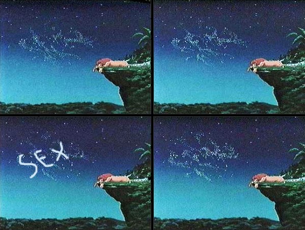 Simba'da, gökyüzünde “sex” kelimesi, sübliminal mesajla verilmek istenendir.