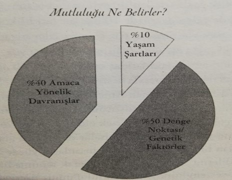 Sonja lyubomirsky haklıydı. %50 genetik olarak bize miras kalabilen mutluluk, %10 oranında yaşam şartlarımızdan ( iyi bir iş, zenginlik vb.) etkileniyordu. %40’nın ise bizim elimizde olduğunu söyledi.