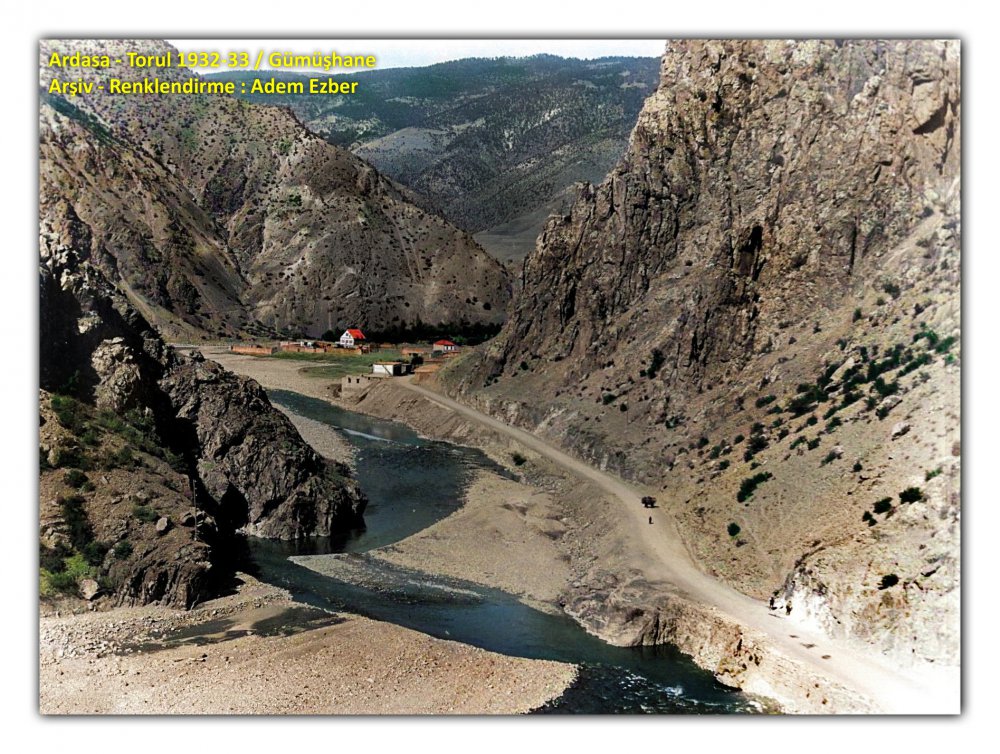 Güzel bir yaz gününde Harşit uhuletle ve suhuletle akarken, tarlalarından otlarını biçen çileli hemşerilerimiz kendileri sırtlarıyla taşıyor otlarını (anlaşılan yüklerini taşıyacak hayvanları yok). Birkaçı da muhtemelen kireç taşı çıkarıyor maden yurdu Gümüşhane dağlarının eteğinden. Henüz dere yatağı özgür, dağları delen tüneller yok, elektrik yok santrali de yok, belki araba bile yok. Birkaç toprak damlı ev, birkaç konak, kuru duvarlar ve toprak şose bir yol.