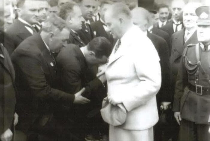 Fotoğraf: Kelkit Belediye Başkanı Alaaddin Şahin Atatürk’ün Trabzona gelişlerinde karşılayanlardan karşı planda (Atatürk yaka gömlekli)