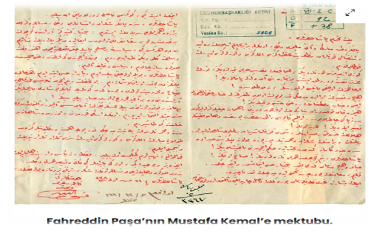 Aşağıda Fahreddin Paşa’nın Gazi Mustafa Kemal Paşa’ya gönderdiği mektubunun tam metnini sizlerle paylaşmak istiyorum:
