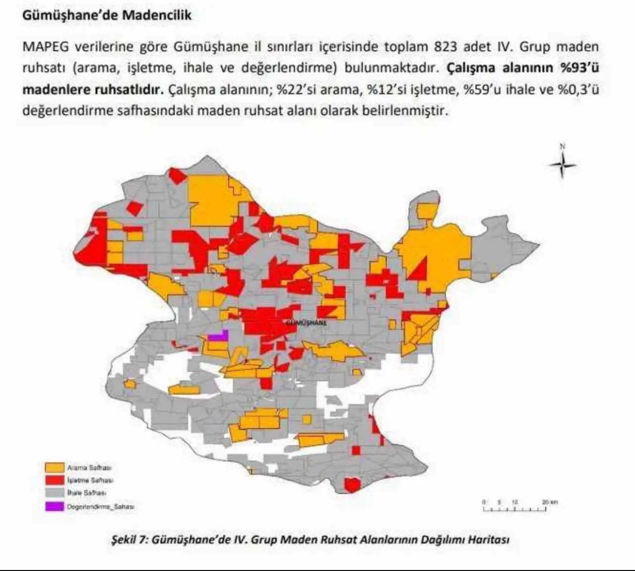 Çalışma alanının %93 ü maden ruhsatlı olan yerlerde ise bunların hiçbiri filizlenmez ve turizmle büyüme ancak masal olarak kalır.