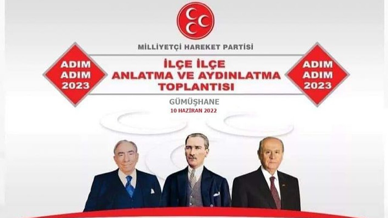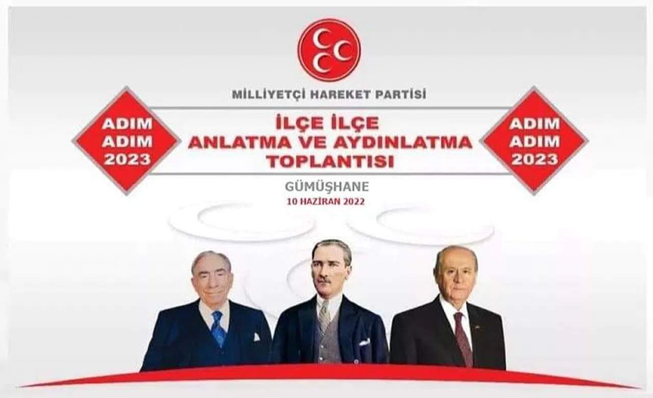 Milliyetçi Hareket Partisi (MHP) Genel Başkanı Dr. Devlet Bahçeli’nin talimatıyla ülke genelinde başlatılan “Adım Adım 2023, ilçe ilçe Anlatma ve Aydınlatma Programları” kapsamında MHP yöneticilerinden oluşan heyet 3 gün boyunca Gümüşhane’de bulunacak.
