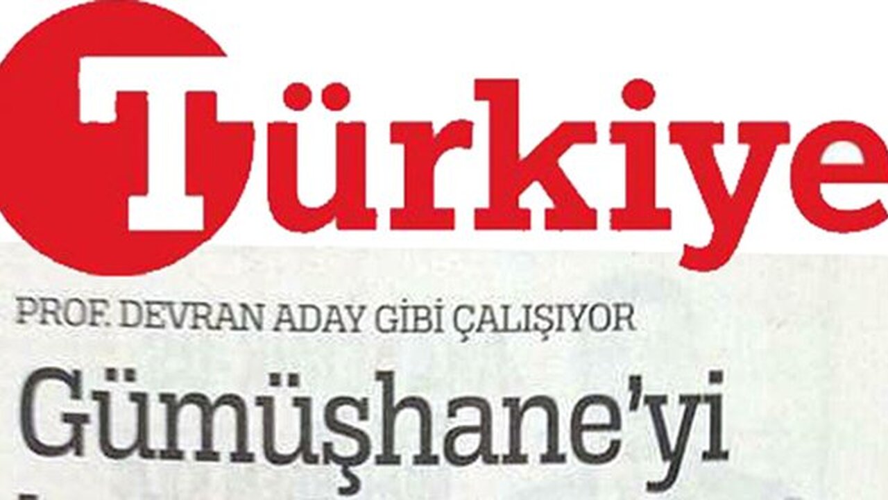 Türkiye Gazetesi, 26 Şubat 2015 tarihli baskısında AK Parti Gümüşhane Milletvekili aday adayı Prof.Dr. Yusuf Devran’ın Gezi Parkı olayları sırasında Hükümete verdiği önemli desteği gündeme taşıdı.