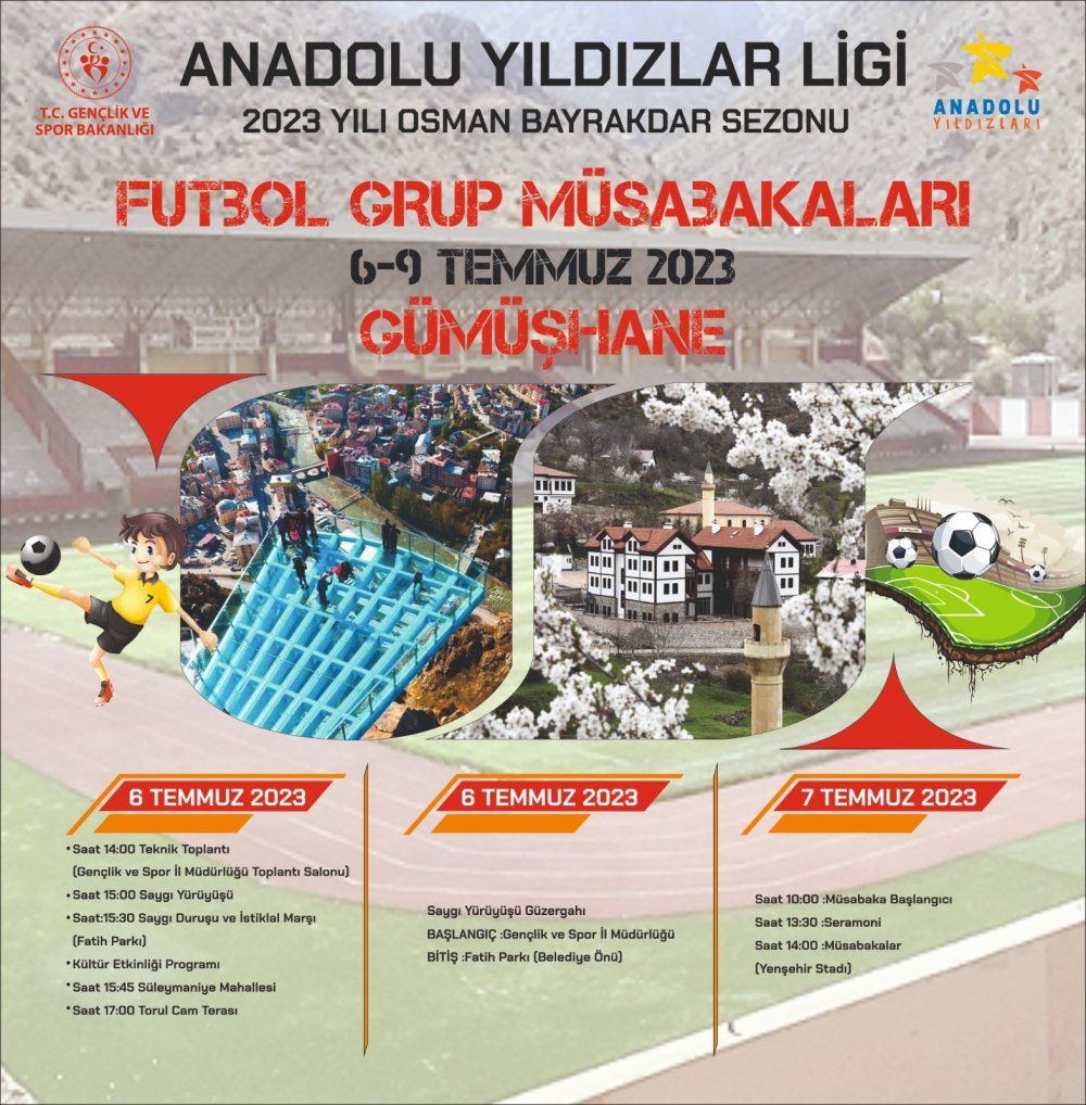 Artvin, Ardahan, Tokat, Ordu, Giresun, Trabzon, Erzincan, Erzurum, Rize, Bayburt ve Gümüşhane olmak üzere toplam 11 ilden 110'u kız, 140'ı erkek olmak üzere toplam 250 sporcunun katılacağı grup müsabakalarında gelecek heyetler Süleymaniye Mahallesi ve Torul Kalesi Cam Seyir Terasını da gezecek.
