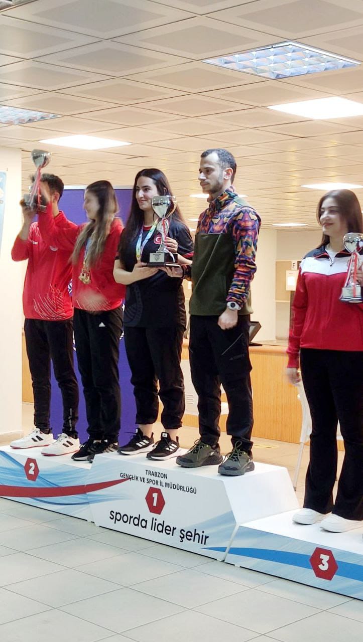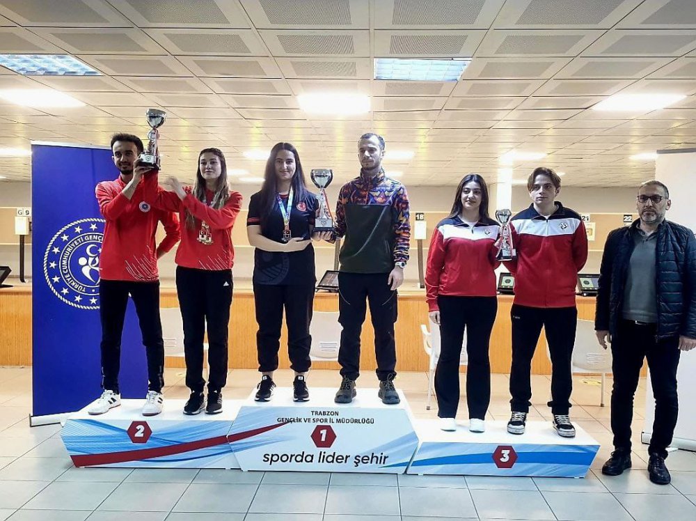 Türkiye Üniversite Sporları Federasyonu 2024 ÜNİLİG faaliyet programında yer alan ve Trabzon’da yapılan Atıcılık Türkiye Şampiyonasında sporcularımız 10 metre Havalı Tüfek Mix takım yarışmasında M. Furkan Abiş 306,6 puan ve Elif Zeynep Geçim 309,6 puan alarak Türkiye şampiyonu oldu. Bir diğer sporcumuz Elif Zeynep Geçim ise 621,7 ferdi puanla Türkiye ikincisi oldu.