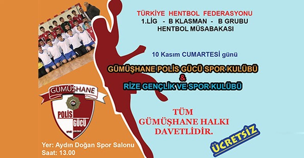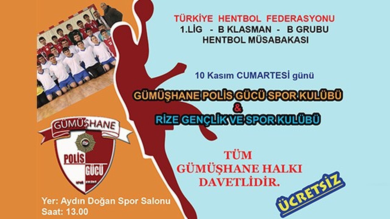 Türkiye Hentbol 1.lig erkekler B klasman, B grubunda mücadele eden temsilcimiz Gümüşhane Polis Gücü Gençlik ve Spor Kulübü, 10 Kasım Cumartesi günü Rize temsilcisini konuk edecek.