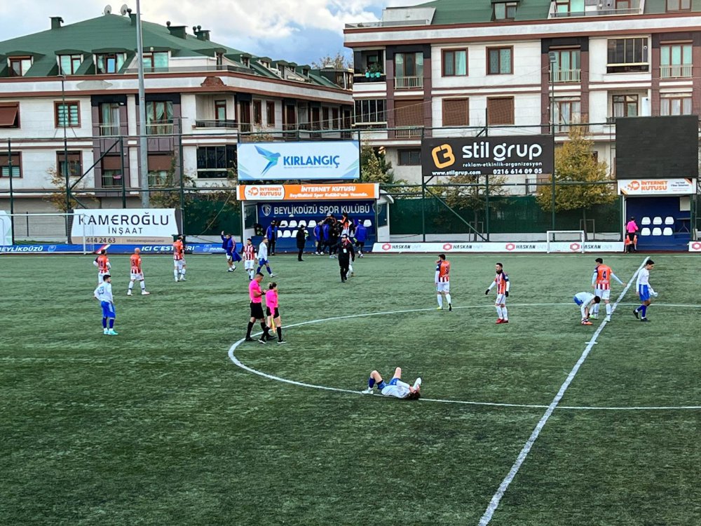 Maçın 50. Dakikasında Büyükçekmece Belediyespor’da golün sahibi Efe Karaahmet gördüğü ikinci sarı kartla takımını 10 kişi bıraktı.