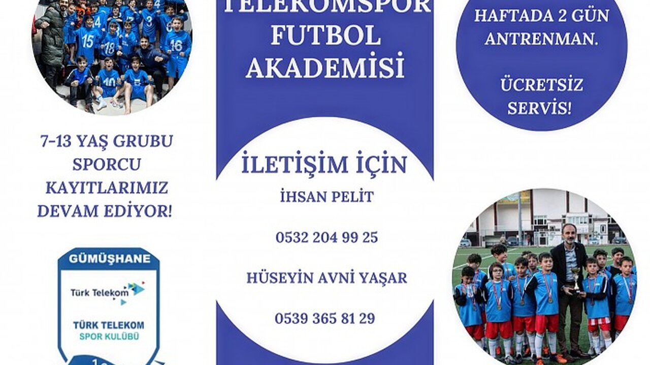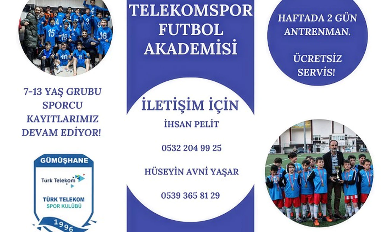 Gümüşhane Telekomspor Futbol Akademisi, gerek futbol eğitimi gerekse kişisel gelişim açısından Gümüşhane çocuğunun geleceğine talip.